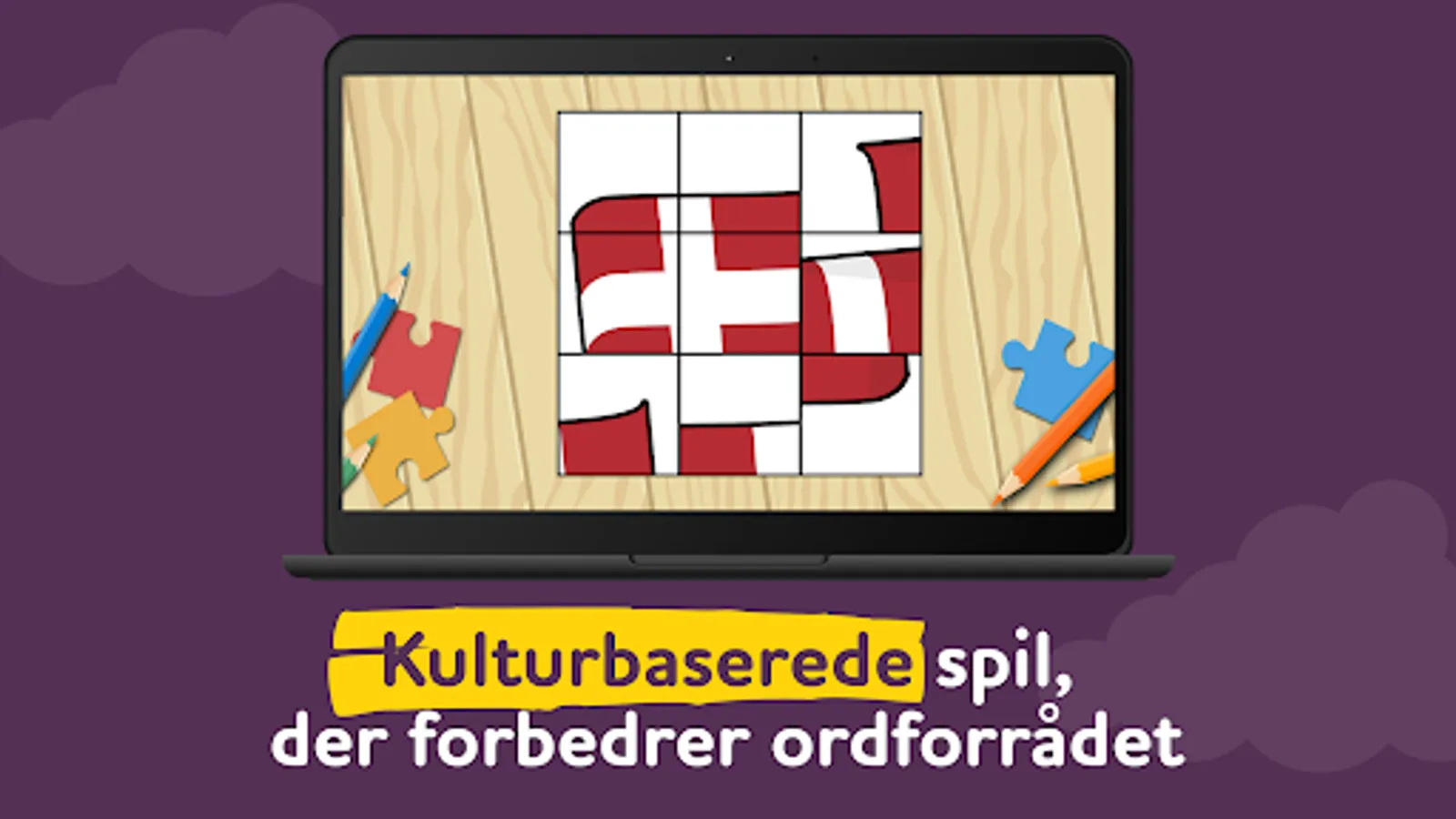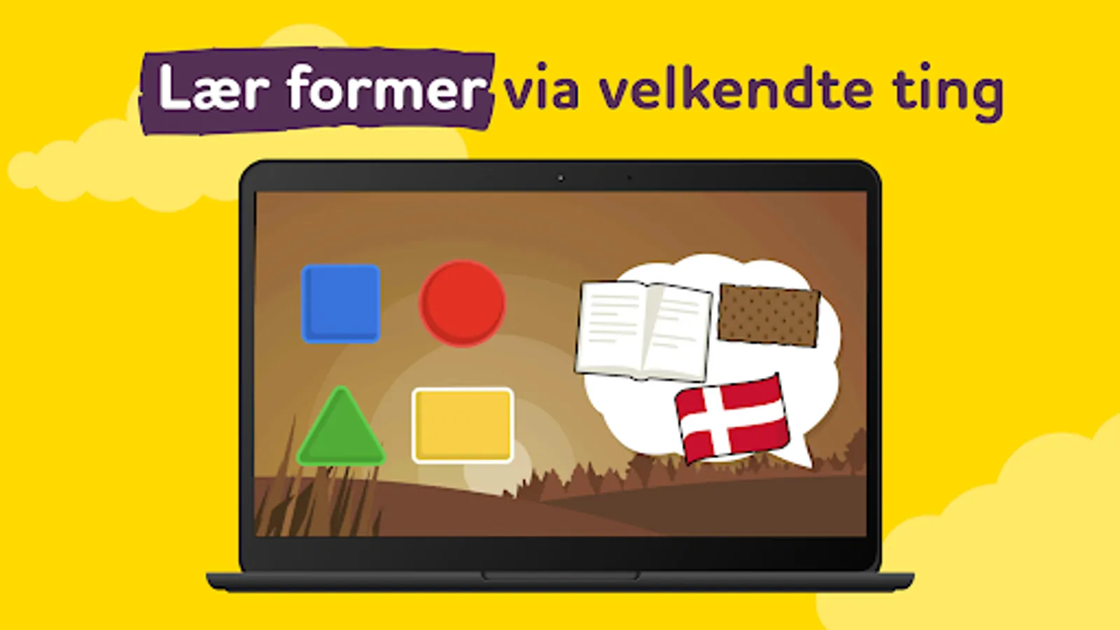 * teaches through the objects of the Danish culture and local nature (e.g. white as a Marguerite Daisy, rectangle as the Danish flag);