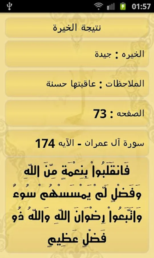 2- Get Istikhara from Quraan then search for the result in the application to get the description and comments. The "Search" feature includes: