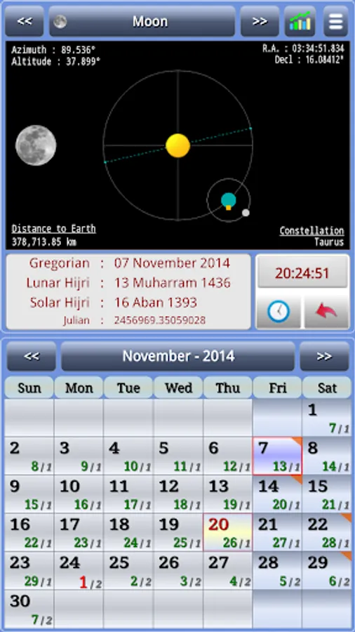 - Sky Maps with the planets, brightest stars and location of the Lunar Mantions (Moon Stations).