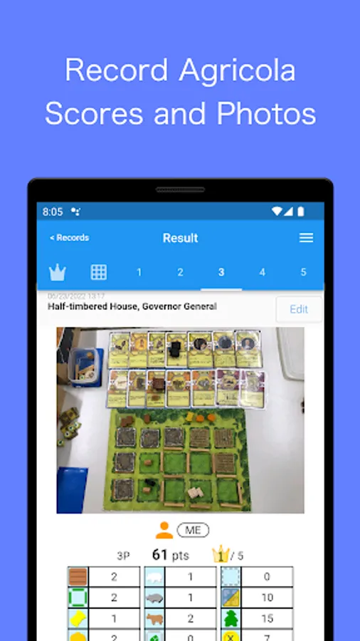 "AgriScore" is a score calculation and recording application specialized for the board game "Agricola".
