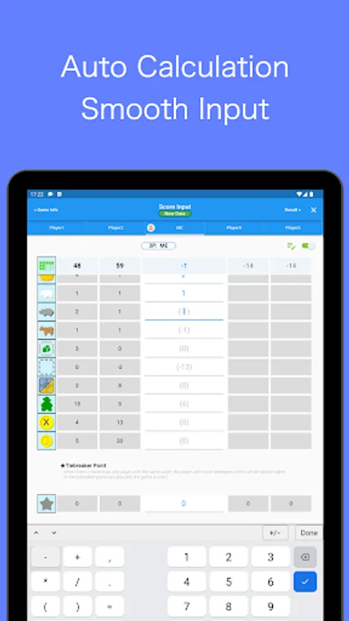 -Inputting scores is fast because it automatically moves to the next item when you input a score.
