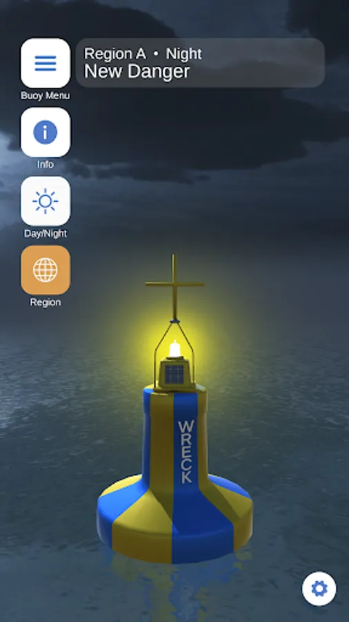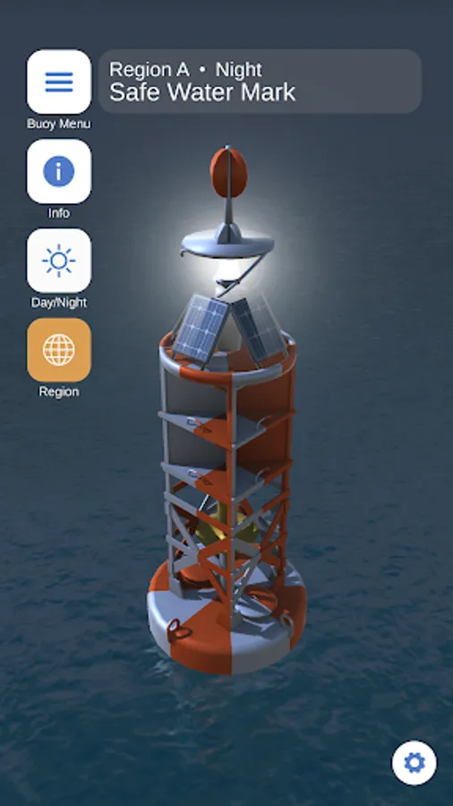 The app provides a full 3D visual of the type of buoy, colour, shape and lighting sequence for night-time.