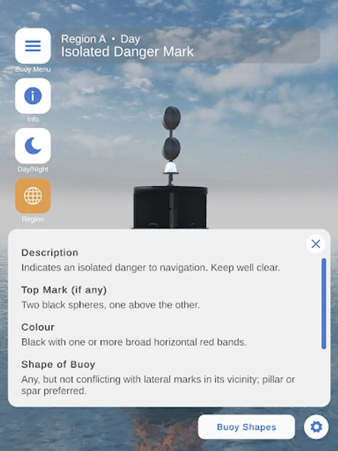 Whether you are a person just starting off in the industry or an experienced seafarer looking to refresh your knowledge, the app provides all the required buoyage information you need to steer safely at sea.