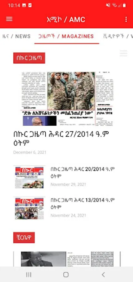 - Read Magazines in Four different languages Amharic, Oromifa, Awigna, Himtegna