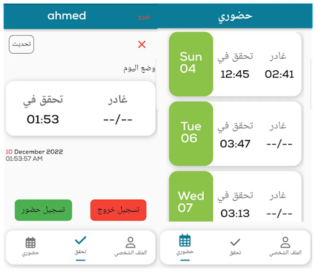An application to record the time of attendance and departure of employees in their workplaces by downloading the application on the employee's phone and that the employee logs in to the application when he comes to the workplace and the application uses the GPS in the location where the phone is located and the time is saved in the application and sent periodically as an attendance and departure report to the employee in company.