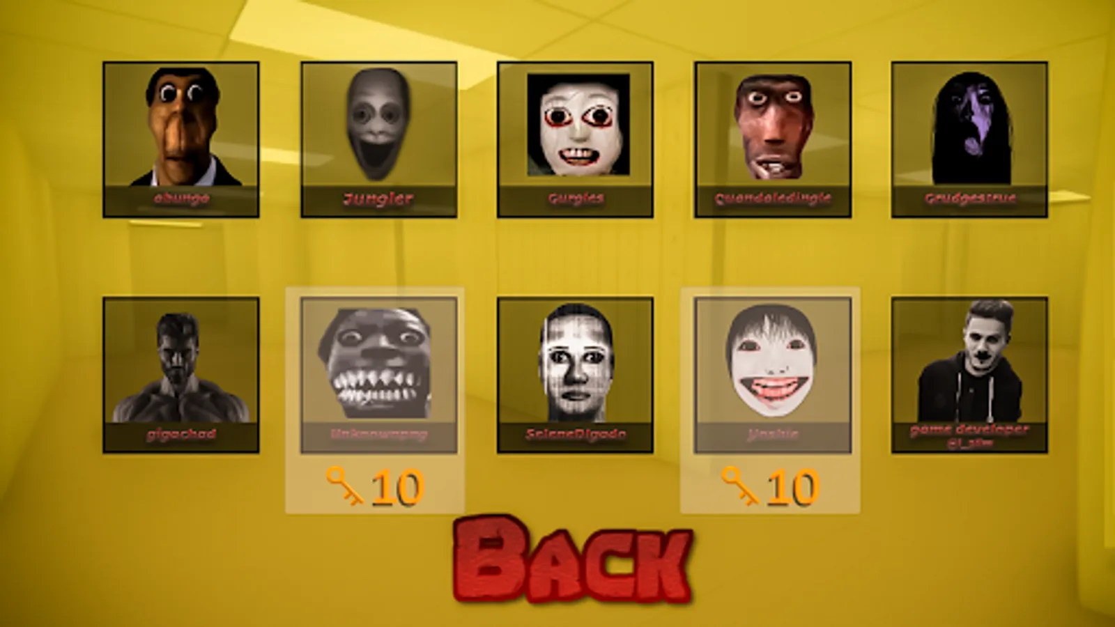 The nextbots game begins in Backrooms and you have to try to get out and survive Obunga, Selenedelgado, Yoshie and other monsters.