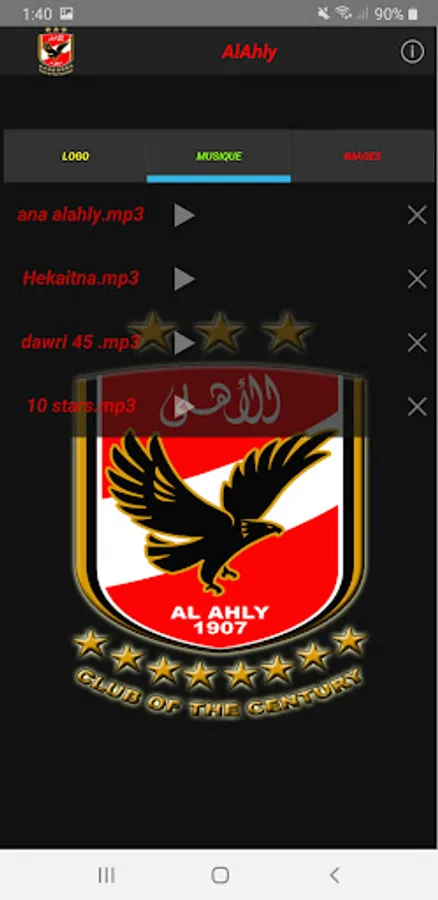 An application for the songs and pictures of Al-Ahly Club of Egypt to listen to the best songs of the team and share the most beautiful pictures with your friends.