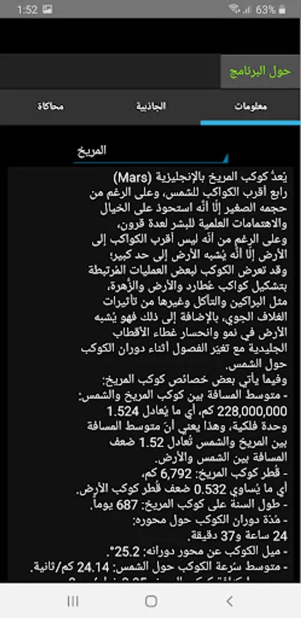 Kawakib application is an application that enables you to identify the planets of our solar system, and provides you with valuable and useful information about the planets in our solar system. Inside, with illustrations