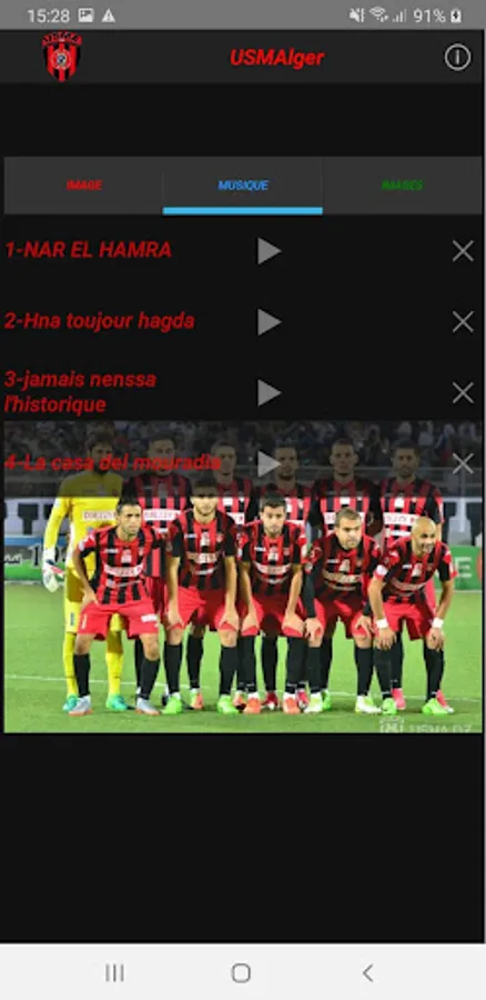 Through the application, you can listen to the most beautiful songs of the USMA team and share the most beautiful pictures through various social networking applications.