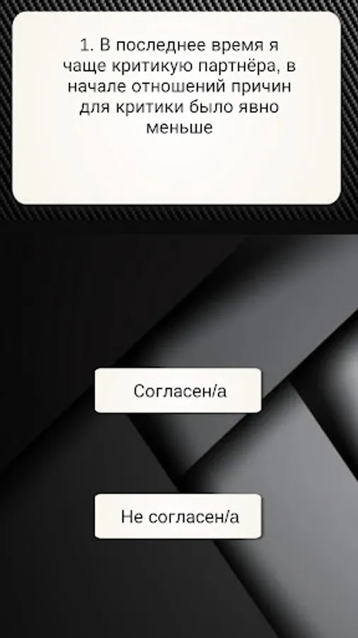 Why wonder if you or your partner is an abuser, ruining the life of yourself and others, when you can take a 10-question test and be sure of the result? Even if you are not in a relationship right now, this knowledge will not harm you, but will only help you avoid mistakes in the future, so download the application and find out the answer at last!