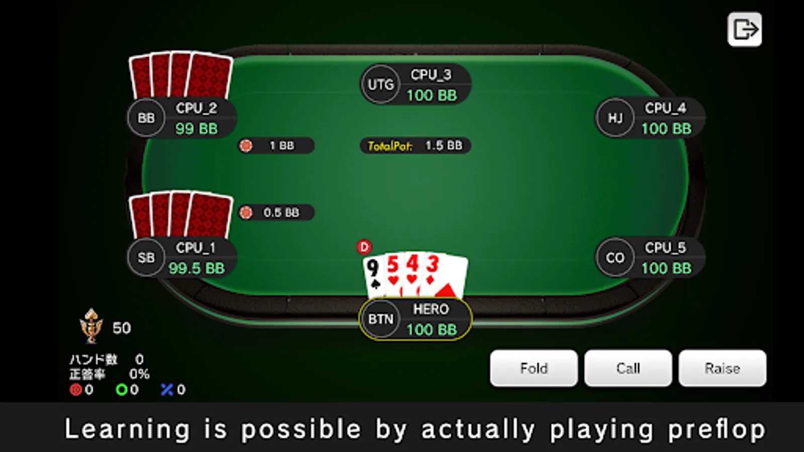 You can also practice "Open," "3BET," "4BET," "5BET," and "Squeeze."