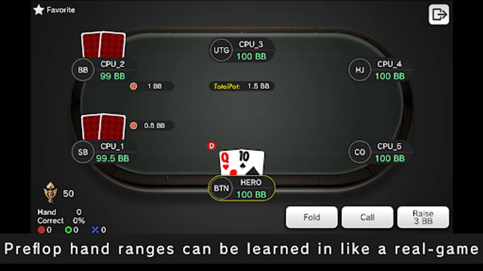 You can train preflop in your spare time on the train, before going to bed, etc. and stand out from your rivals!