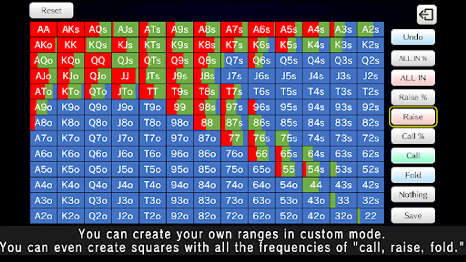 You can also practice ranges on "all-in" when your stack is low in a tournament.