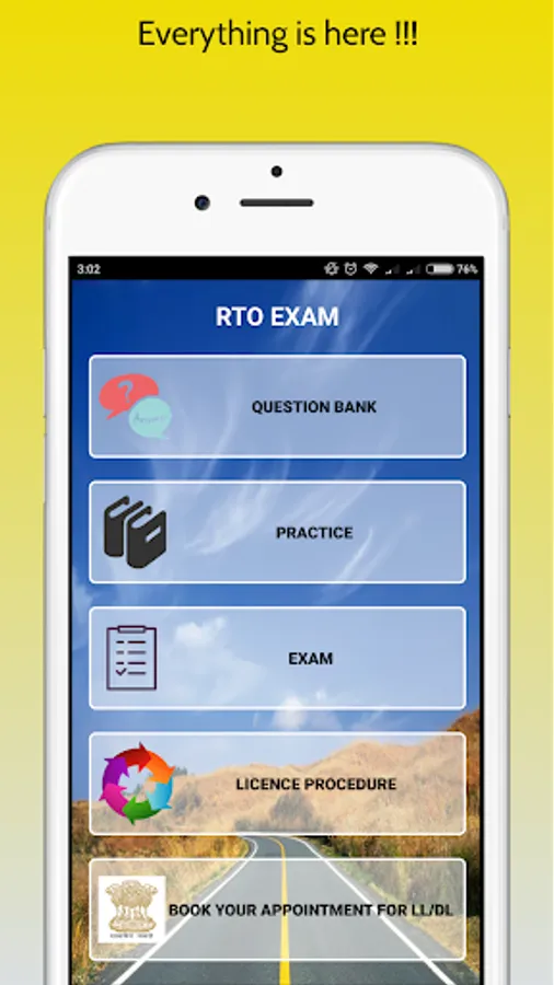 - Exam : Exactly same as RTO test, random questions and road signs related questions will be asked in this exam.Time limit for each question will be 30 seconds(Exam Mode)
