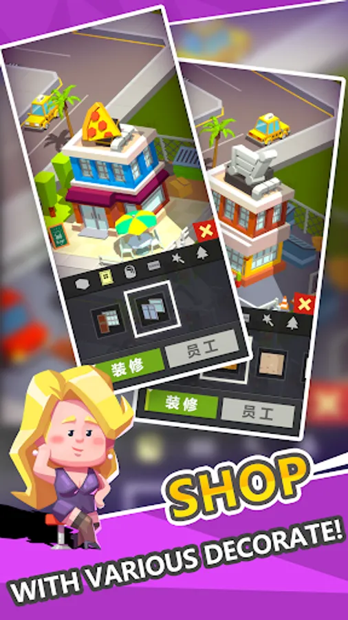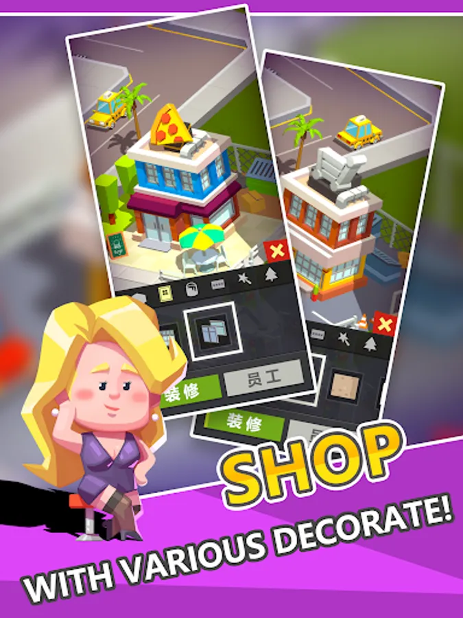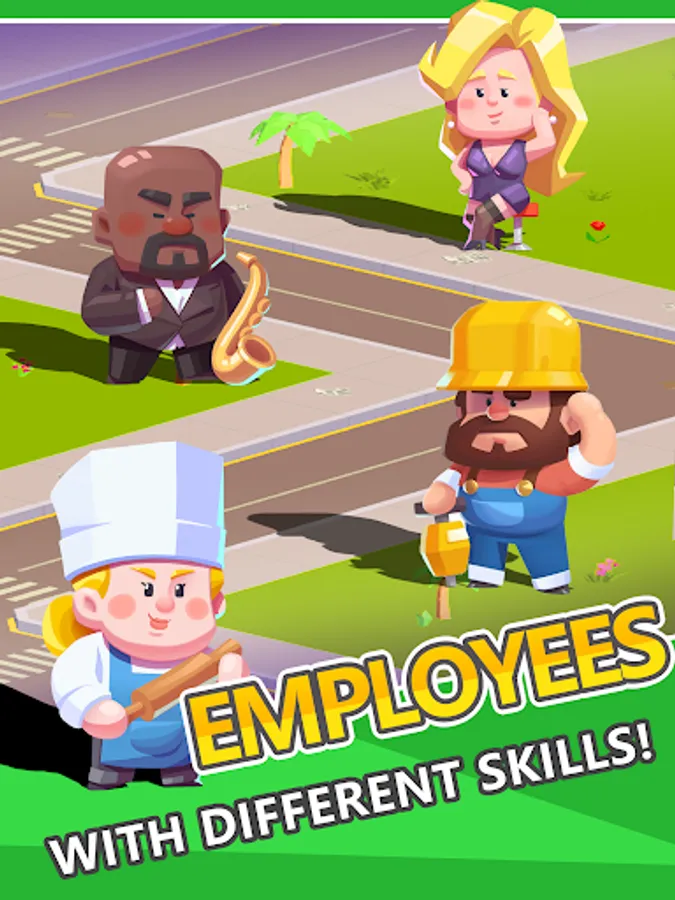 Starting with one block, build restaurants, shopping malls, entertainment buildings and other buildings, then hire managers to run the business of these buildings.
