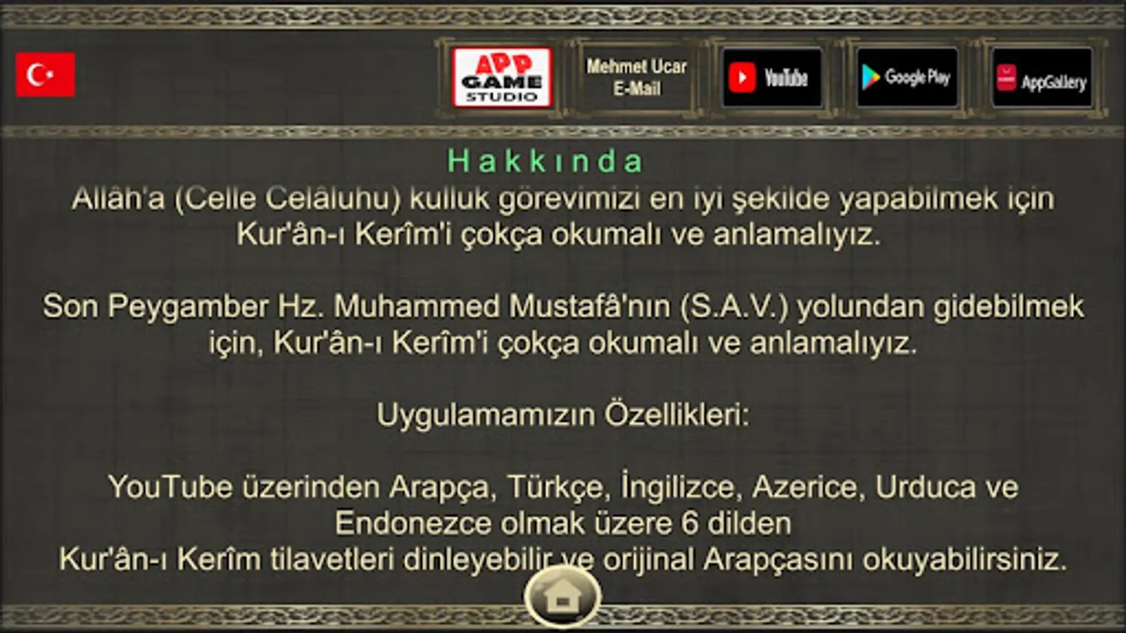 You can read a written translation of the Qur'an in Turkish, English, Azerbaijani, Urdu and Indonesian languages or listen to the audio translations in these languages. You can also read and listen to the Quran in its original Arabic.