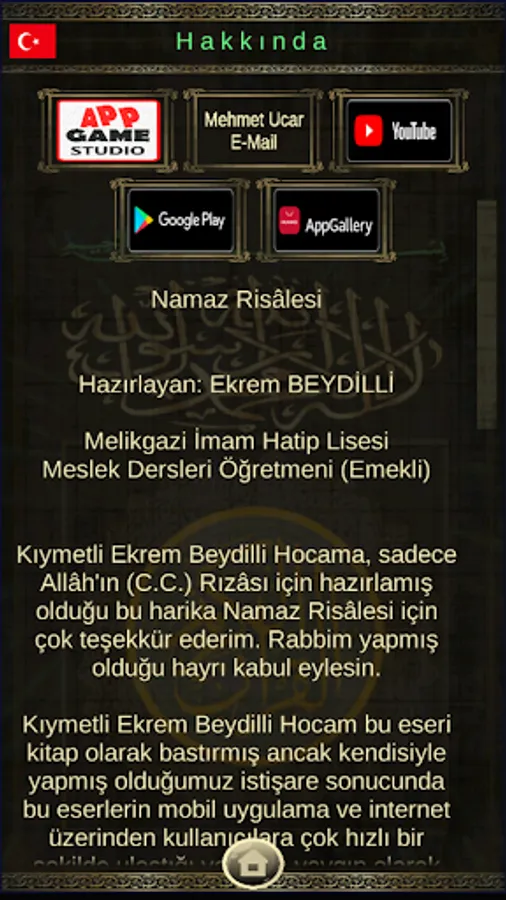 Dear Ekrem Beydilli, my teacher published this work as a book, but as a result of our consultation with him, we agreed that these works reach users very quickly through mobile applications and the internet and can be used more widely. In order to present it to the benefit of more of our religious brothers, we have decided to publish the works and works prepared by our teacher on the mobile platform in this way. This mobile application is the first work that we have transformed into a mobile platform from the works prepared by our teacher. We would like to publish his other works one by one as my Lord allows.