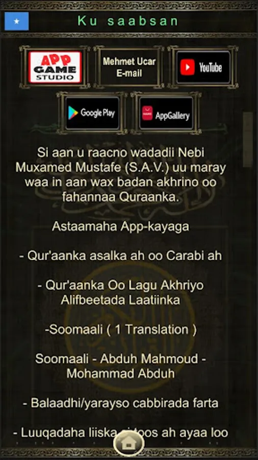Application keyga waa mid si fudud loo isticmaali karo laguna aqrin karo walaalaha raba in ay quraanka ku akhriyaan nolol maalmeedkooda haday tahay carabiga iyo qofkasta oo xiiseeya macnihiisa quraanka rabana inuu akhriyo , iyo kuwa doonaya inay ogaadaan amarrada Rabbigeenna, waxaan doonayay inaan u diyaariyo inuu noqdo codsi.