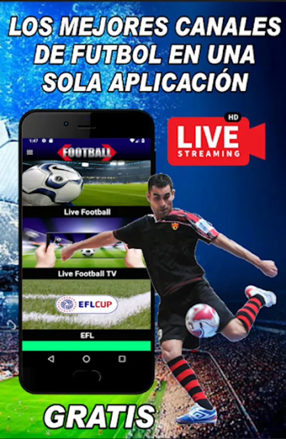 Free live football may be viewed on your mobile phone. Enjoy live streaming of football and soccer matches without the bother of monthly fees and memberships. Get the latest football scores, news, and more from the world of football. On this free Football TV channel, you can watch all international League matches in HD.