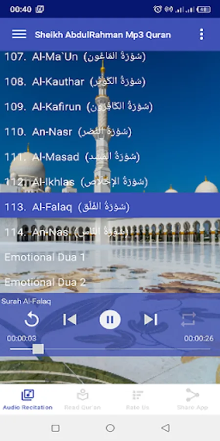 *Every Surah in this app will be played back to back automatically