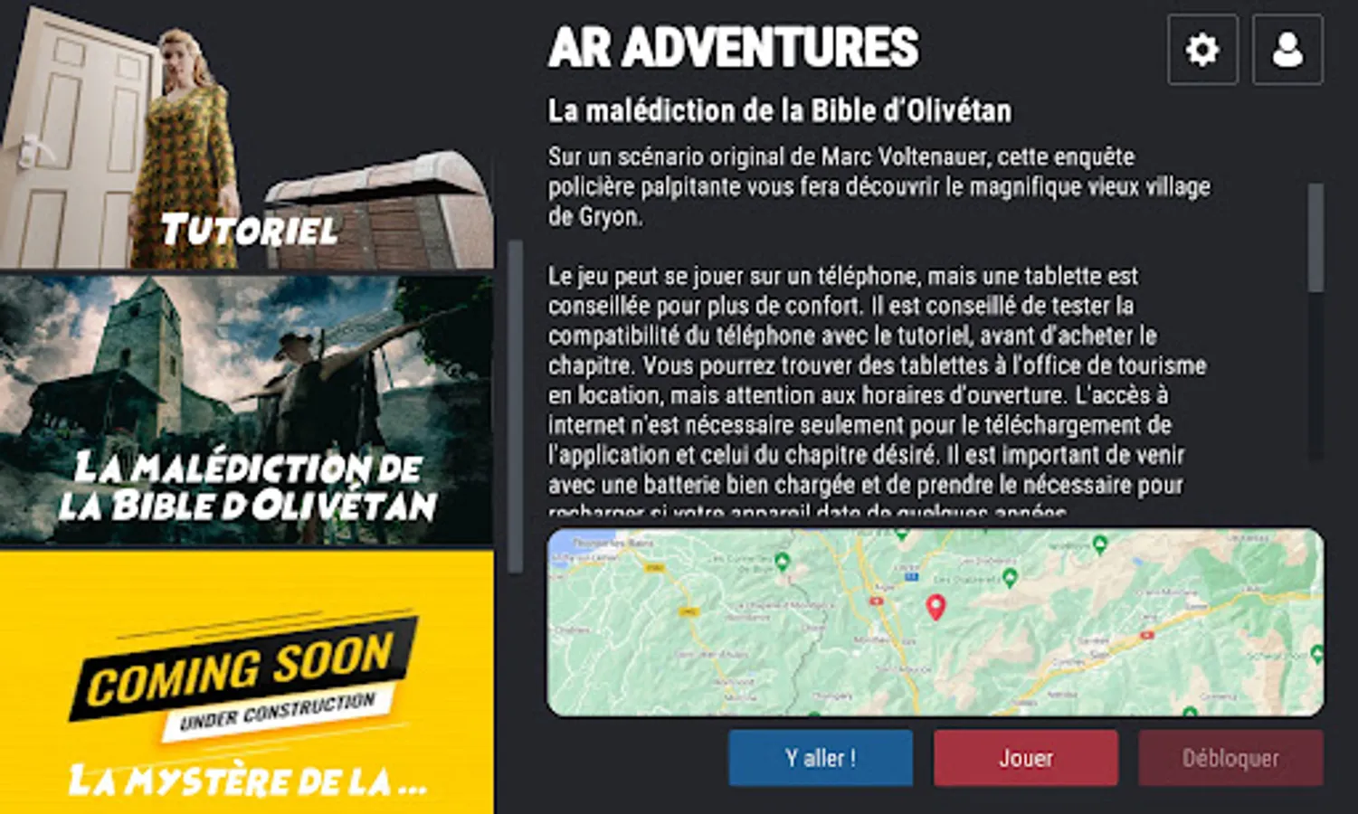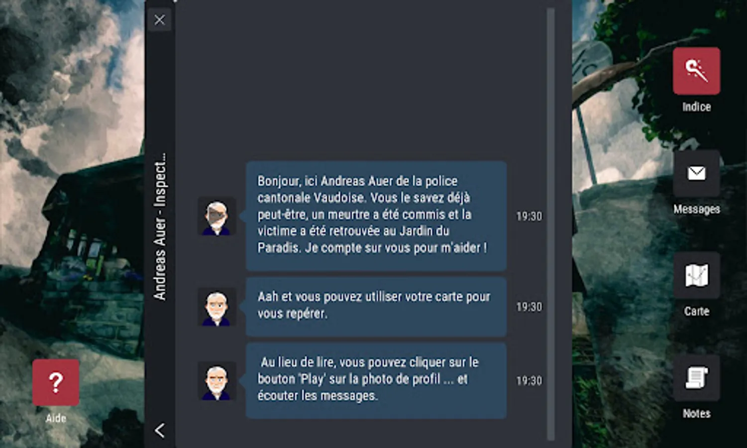 By clicking on 'Unlock', you will be redirected to the chapter purchasing process. You can then start the game. You will already be able to read the information and the few messages that you will receive at home, but you will be forced to come to Gryon to inspect the crime scene and solve the investigation.