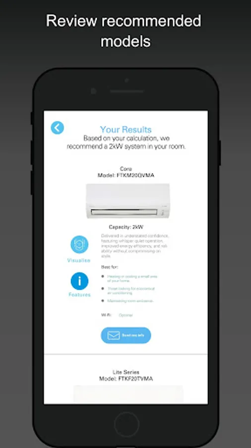 ExplorAir helps you choose the right split system air conditioner for your home, with an advanced sizing calculator and an augmented reality display feature. The sizing calculator enables you to enter the specific details of your room before providing recommendations for the most suitable models.
