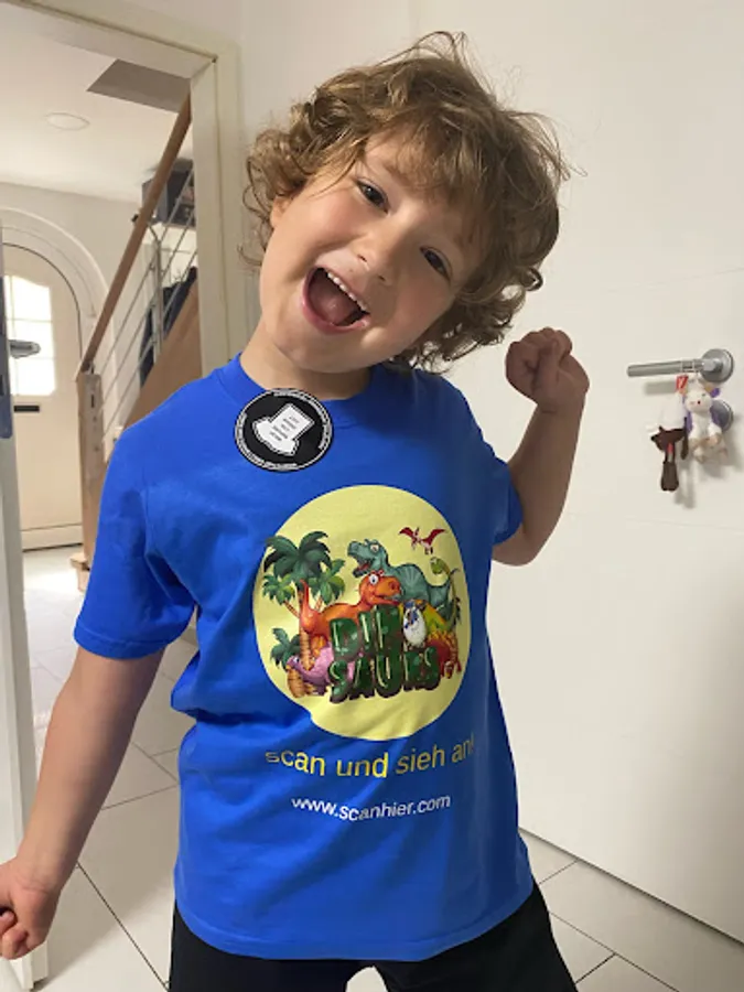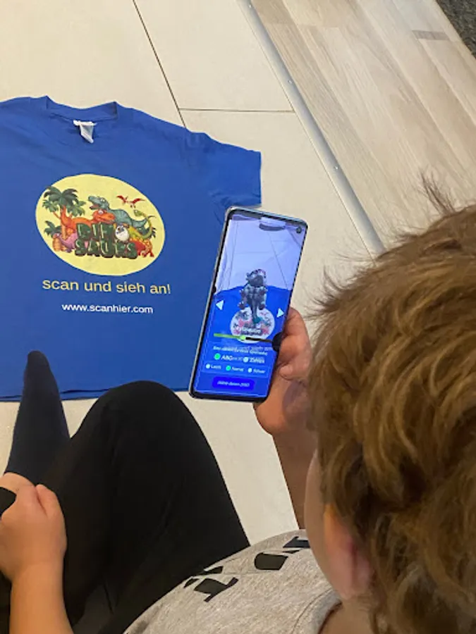 The MINERVA AR product is a high-quality T-shirt, partnered with a free app, which enables kids to learn something about 6 dinos and 6 bunnies, learn the ABC and the numbers until 20 using immersive Augmented and Virtual reality. We have found way to make learning process fun and playful. Simply download the app, put your "leanwithar" T-Shirt on (or get your friend to wear it), open the app, and point your phone or tablet at the MINERVAAR T-Shirt to start playing and learning.