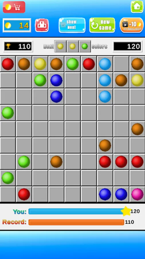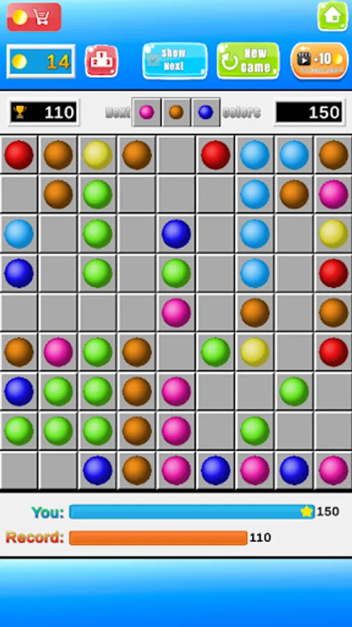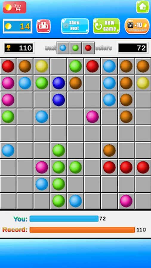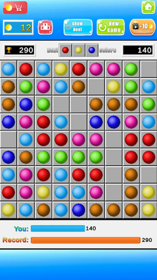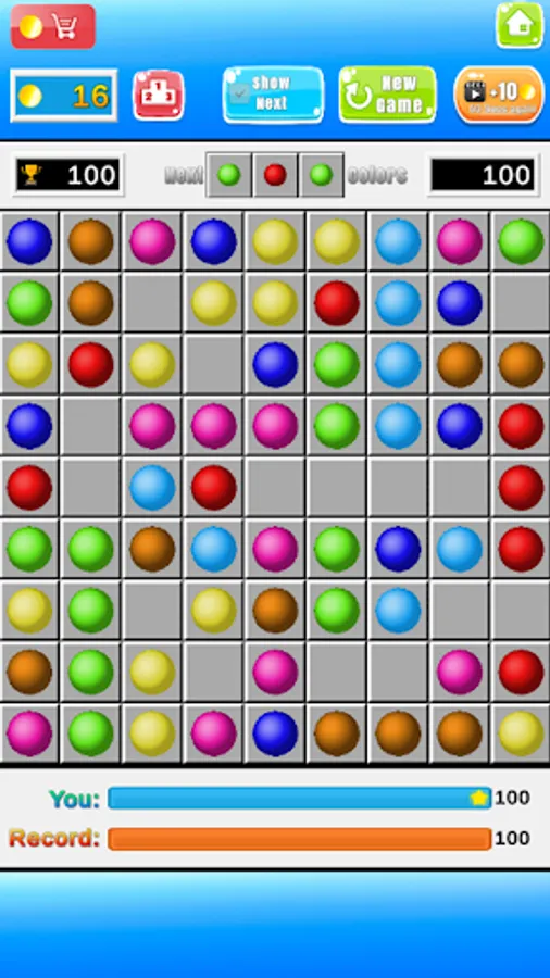 The task is simple: keep screen clean by arranging five or more balls of the same color into one line. The line can be horizontal, vertical or diagonal. Touch the ball then target position.But remember, for each turn, the computer adds three new balls. The place ends very quickly, so don't lose any of your moves!