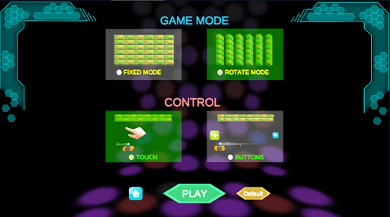 If you want you can play classical fixed mode or play new rotate mode, also you can control the game with your finger or buttons on screen.