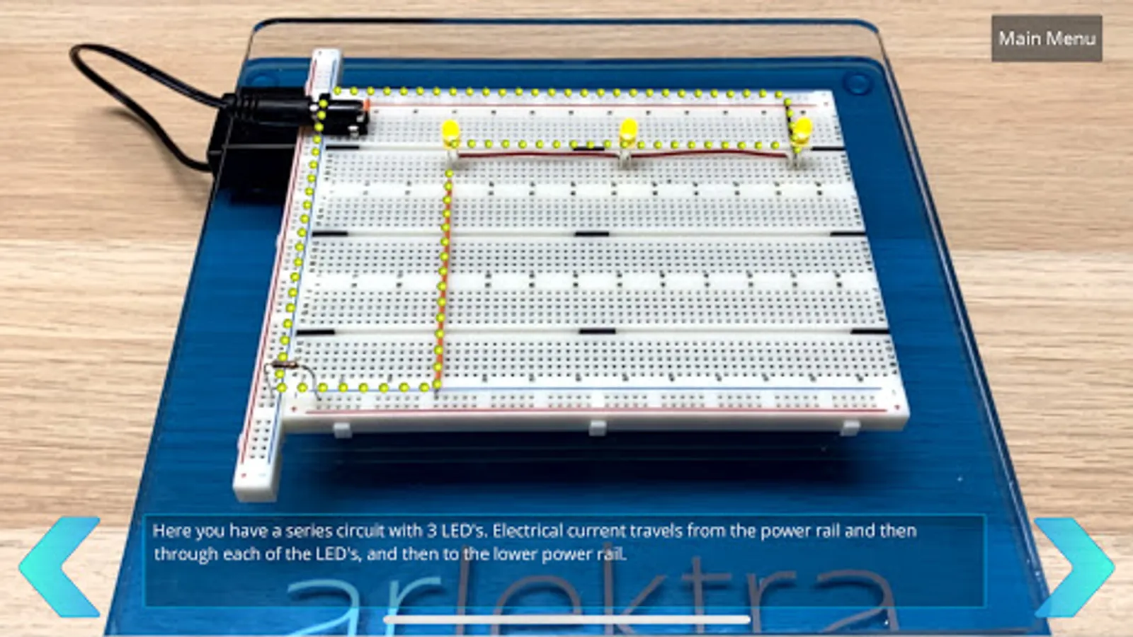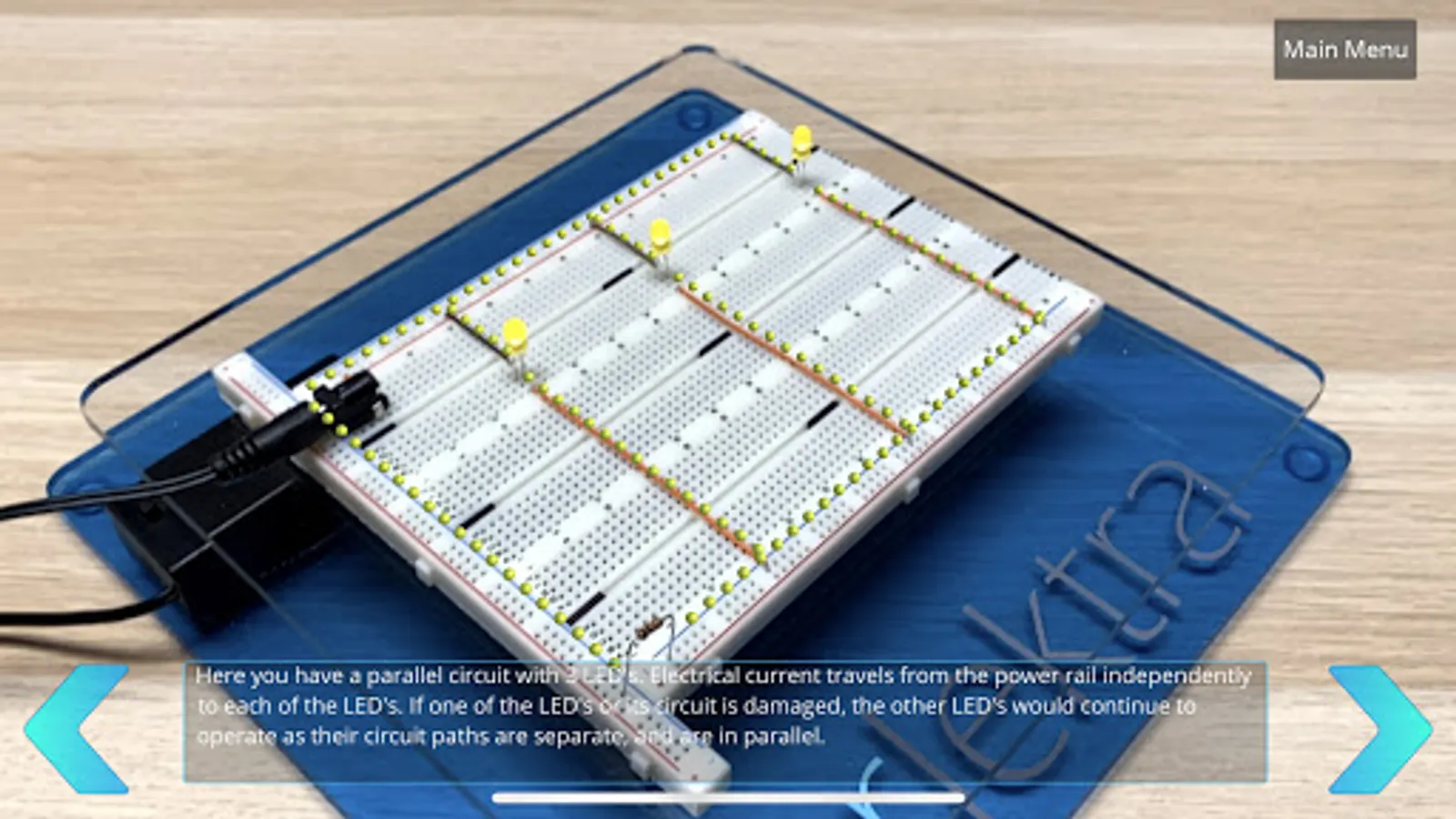 Using step-by-step Visual (3D), Audio and Text instructions, Arlektra will teach you to build electrical circuits, with ease. You’ll learn to build various types of circuits, while using different electrical parts to do so - all without any assistance.