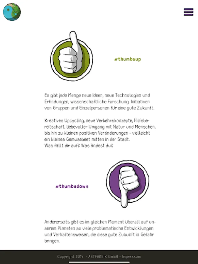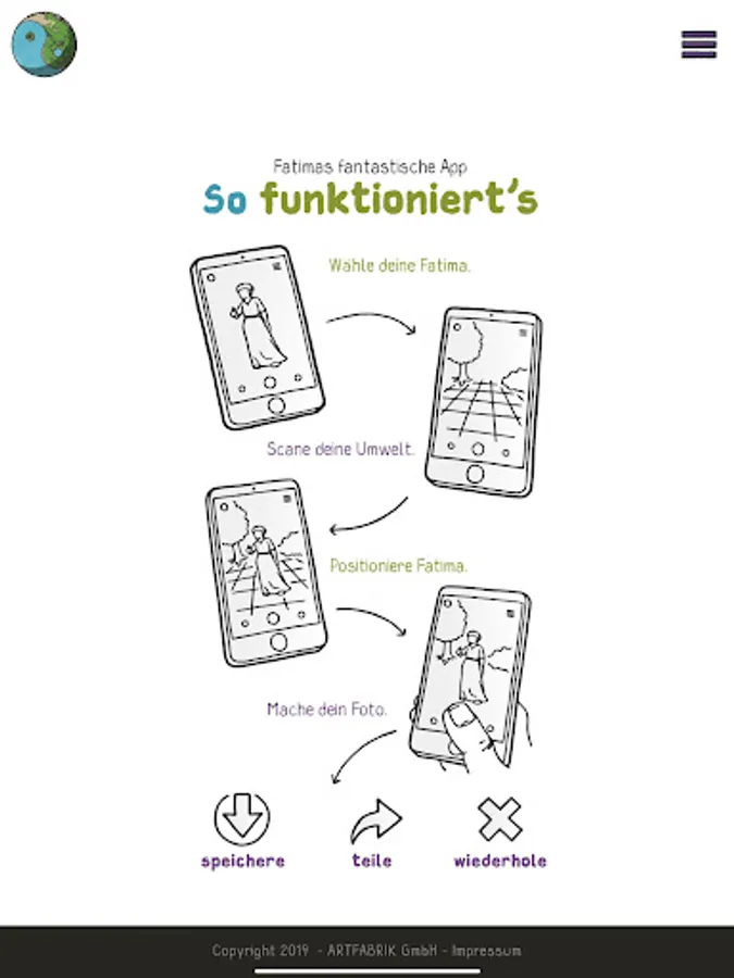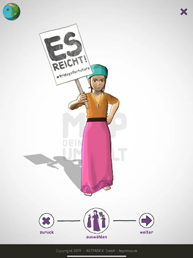 Fatima, our little curious heroine, serves you as a model for creative, attentive and awakening pictures. Our app collects all images that are tagged with #mapdeineumwelt and places them on our world map.