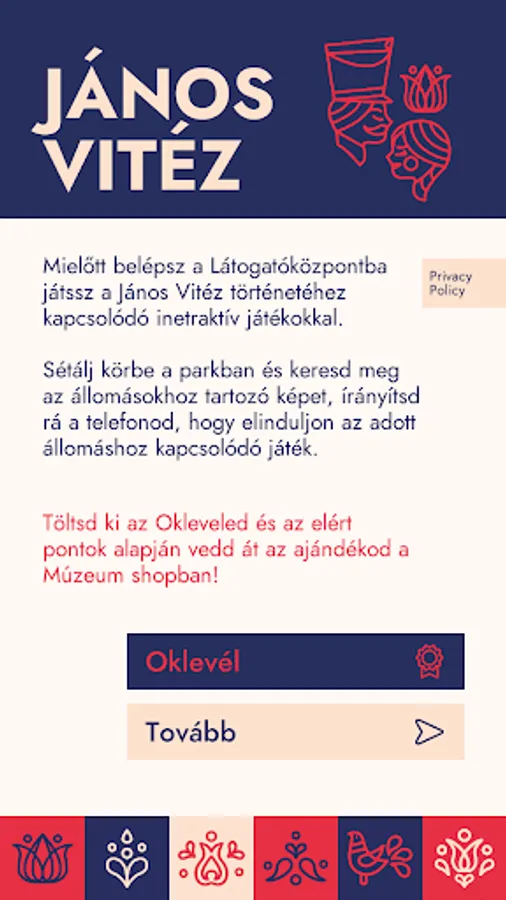 You can get a glimpse into the adventures of János Vitéz with the game, which can be played at game stations placed on unique street furniture in the park in front of the János Vitéz Visitor Center in Kiskőrös. The game gives you the opportunity for 20-25 minutes of meaningful activity before you enter the labyrinth of the visitor center and learn about the adventures of János Vitéz there. If you successfully play through all the tasks issued at the stations, you can receive a gift in the visitor center with a certificate bearing your name.