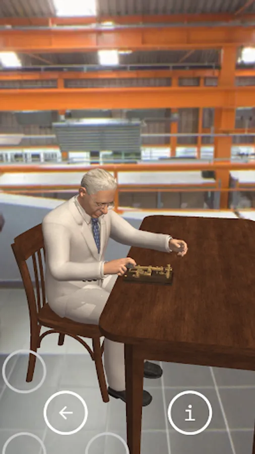 Take a look around your mobile device's camera and find a flat surface with it! Pale dots will indicate the plane where you can place the models. Once you've found it, tap the screen and you're ready to get to know the scientist!