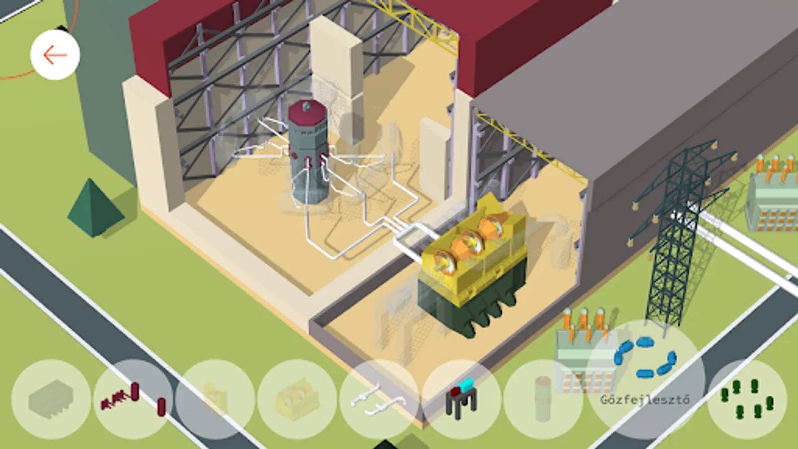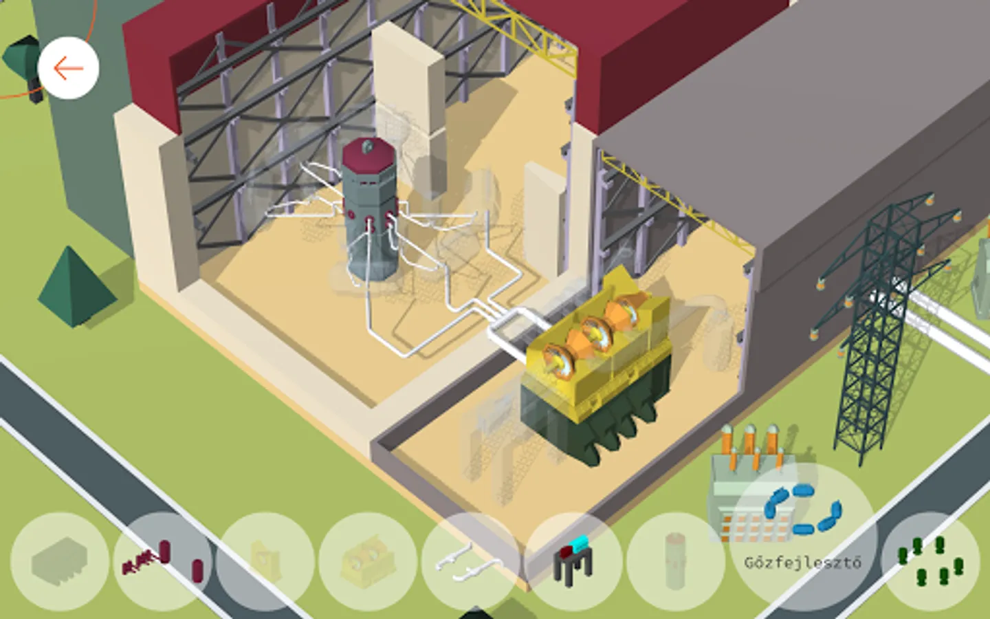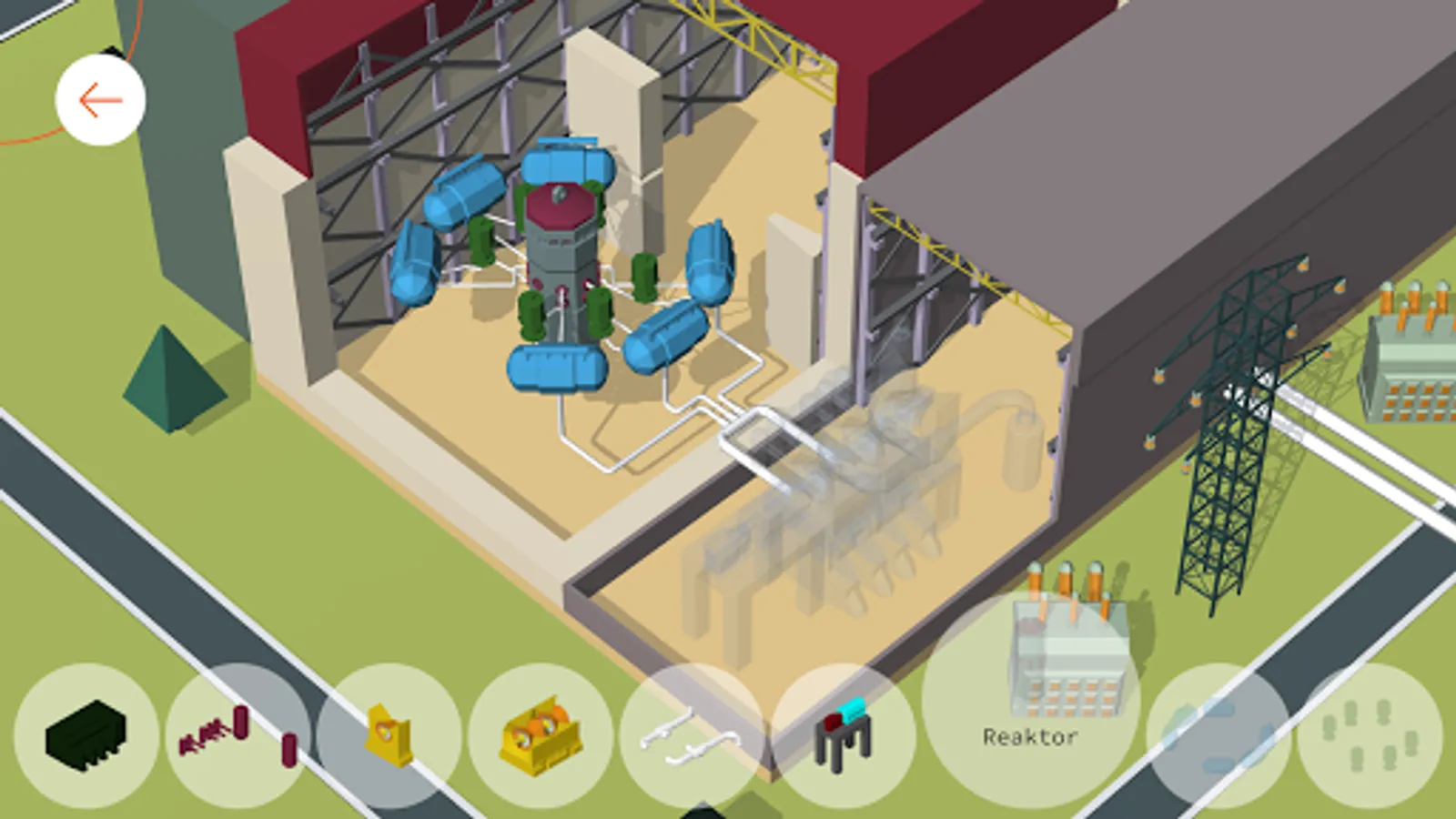 Get to know the parts of the nuclear power plant in more detail! Place each element in the appropriate location in the reactor hall or turbine hall space.
