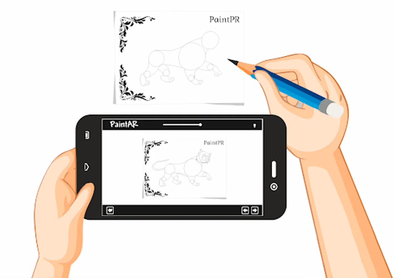 PaintAR is implemented in such a way that the necessary information, using augmented reality technology, is superimposed on a special drawing sheet (see screenshots), on which a special marker is located.