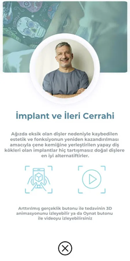 Within the scope of the application, you can reach sample animations of treatments applied with AR (Augmented Reality).