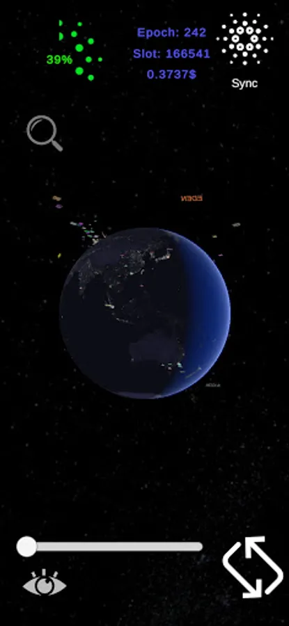 The app is utilizing an Earth model to represent the position of Cardano pools over the world + the real rotation of Earth to demonstrate the current time.