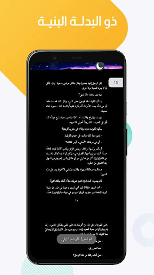 > Night mode for reading in the dark.