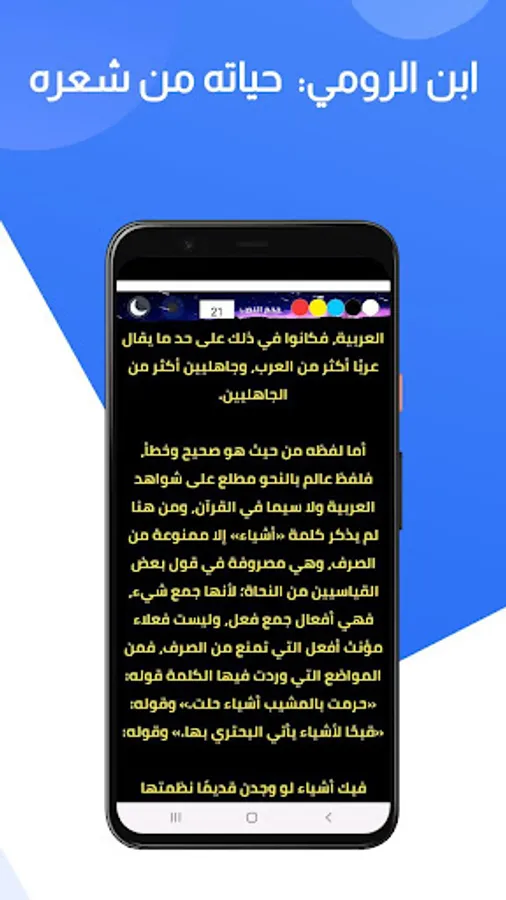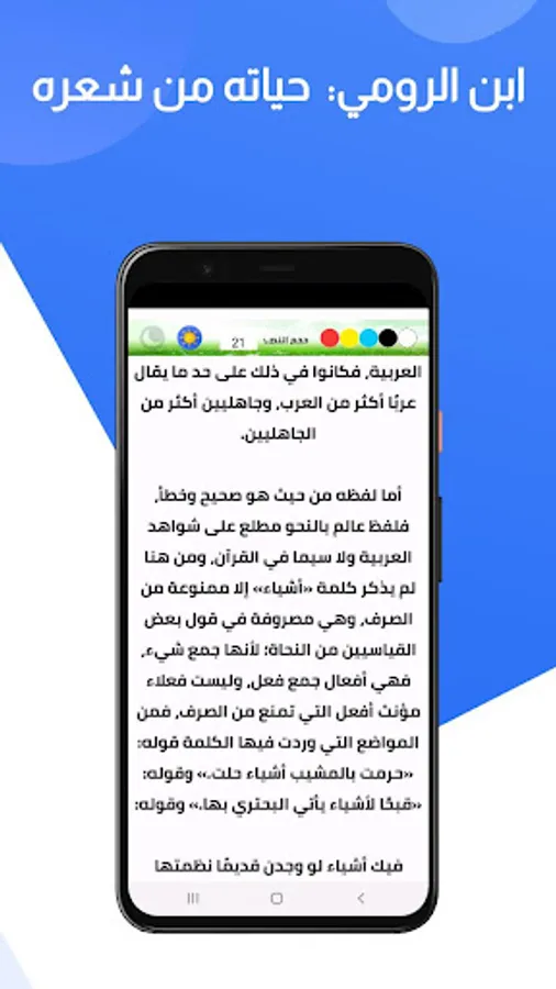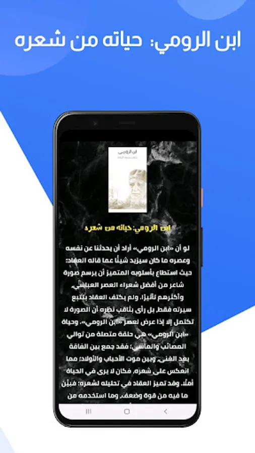 If Ibn al-Roumi had wanted to tell us about himself and his time, he would not have been anything more than what al-Akkad said; With his distinguished style, he was able to paint the image of one of the best and most influential poets of the Abbasid era. Al-Akkad was not satisfied with following his biography only, but also saw with his piercing eyes that the picture is not complete unless it is presented to the era of "Ibn Al-Rumi". The life of Ibn Al-Roumi is a continuous cycle of misfortunes and tragedies. He combined poverty after wealth, and the death of loved ones and children; This reflected on his hair, and he did not see hope in life. Al-Akkad was distinguished in his analysis of his poetry; He explained its strength and weakness, and the methods and meanings it used. He also analyzed his personality and delved deeper into his philosophy. The book was a vivid picture of a poet who still transcends his poetry above many poets.