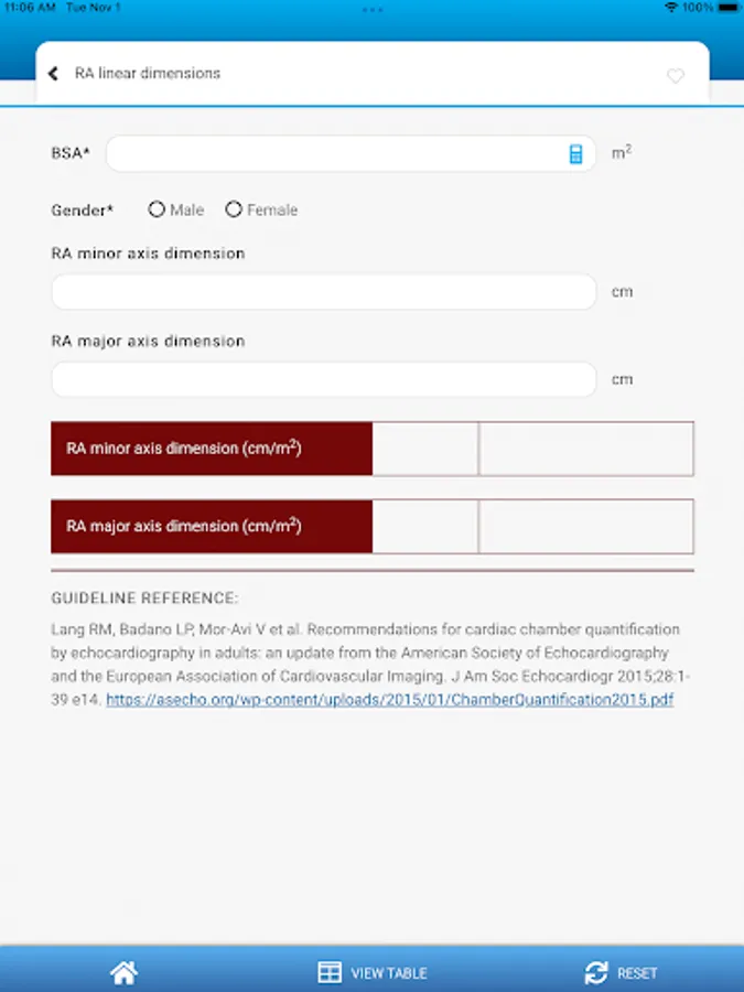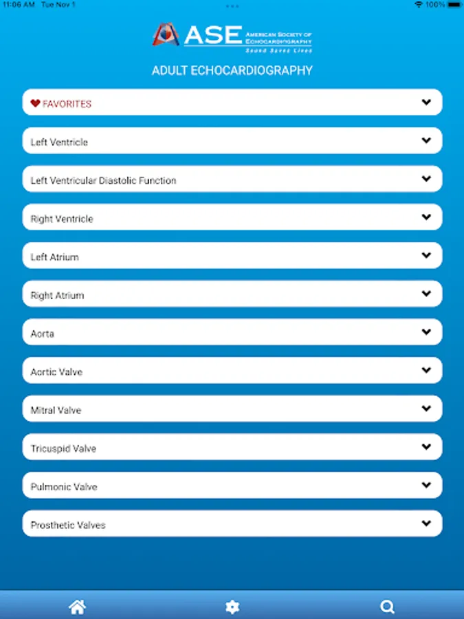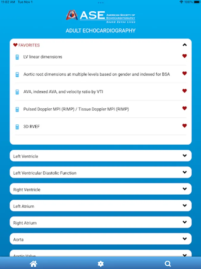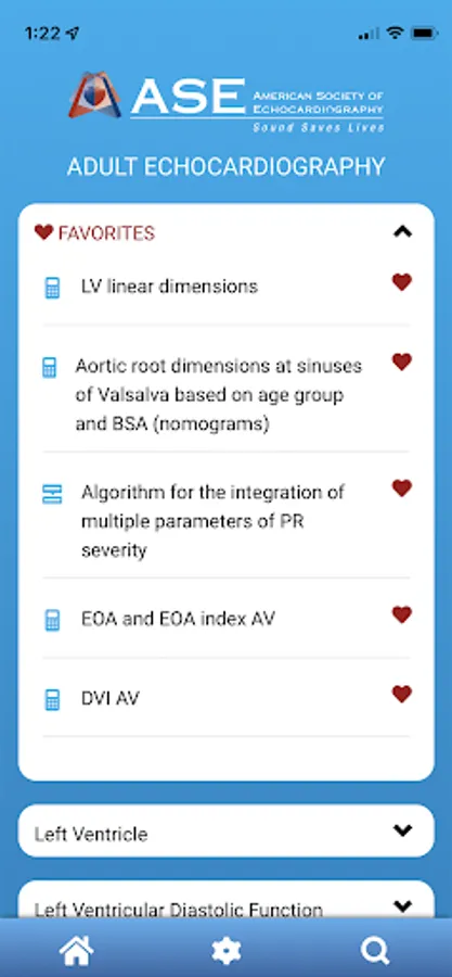 ASE’s EchoGuide provides access to over 50 calculators, algorithms, and charts. EchoGuide was developed based on key ASE guidelines for use by healthcare professionals providing cardiac care. One special feature in the app is that users have the ability to select their favorite interactive tools for easy access.