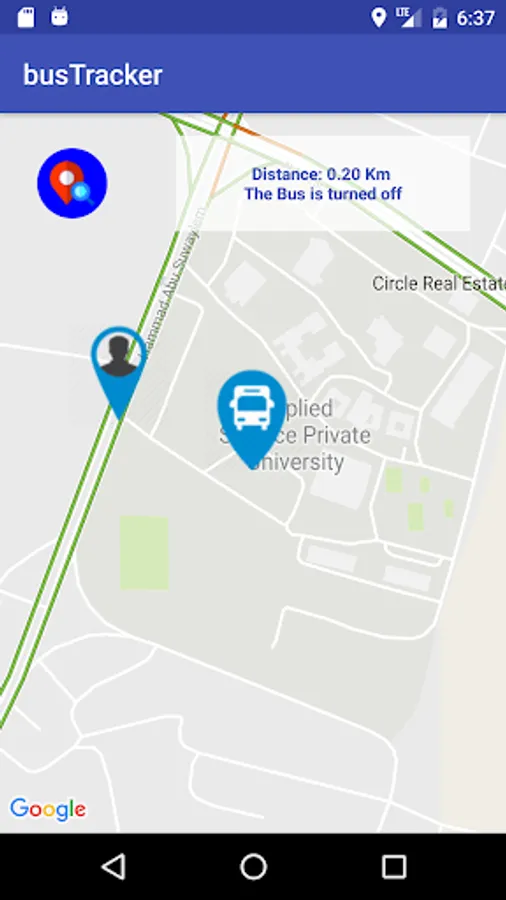 This Project is a private Smart Phone Application for (Applied Science Private University (ASU)) to track the Location of University Buses.