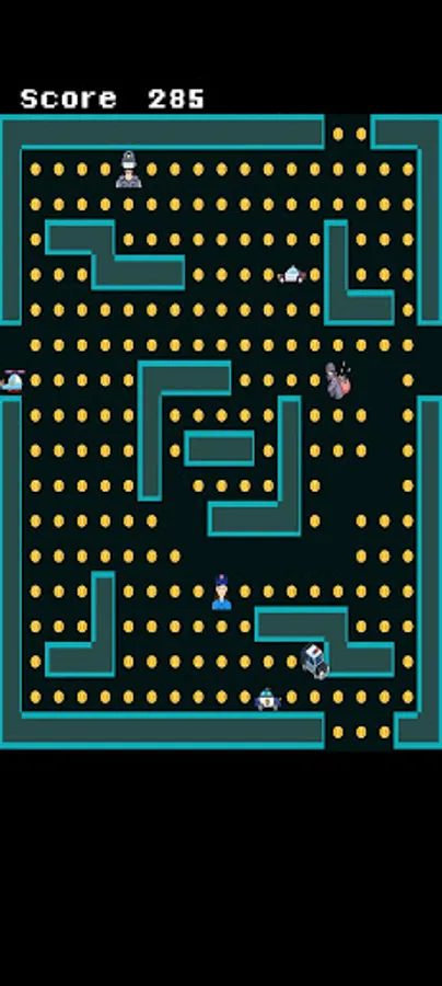 Ghost Eater action maze chase video game , Collect coin and escape from the police and avoid being hunted down to win you must collect all the coin present