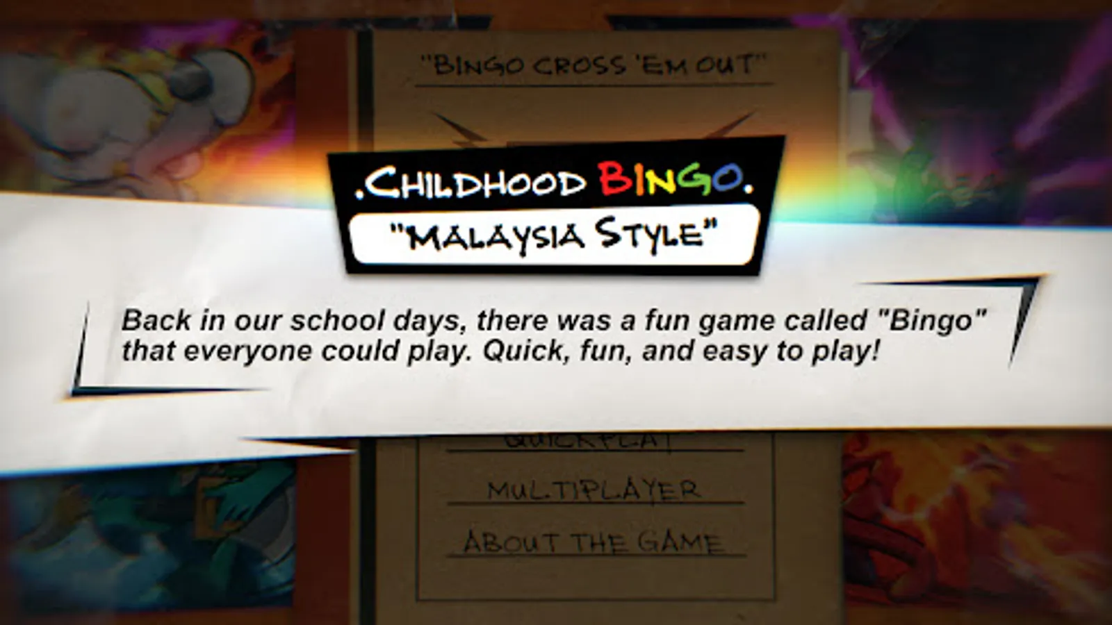 • This ''bingo'' game is a bit different from the classic ''bingo'' game, it's half luck and half strategy, so it's much more interesting. The way of playing is derived from the way Malaysian children played at school. That's why we try to design the style to mimic classroom style.