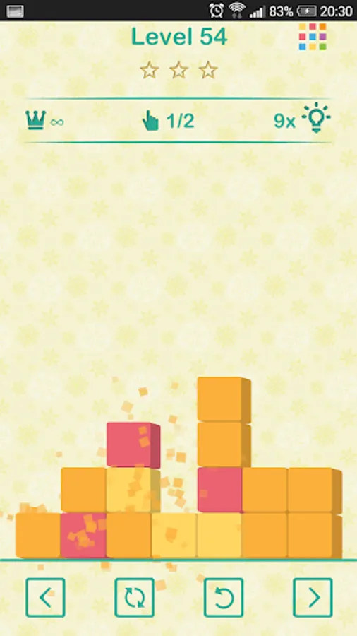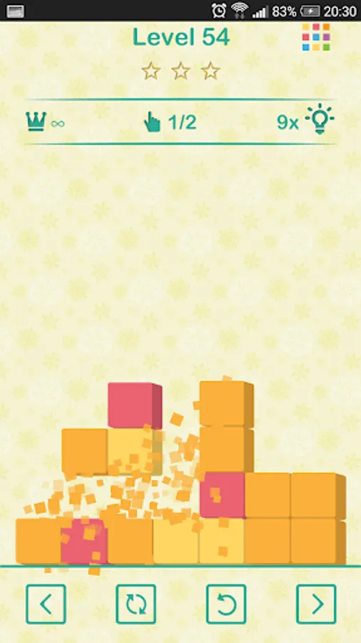 Group 3 or more boxes of the same color together to make them explode. Destroy all the boxes to finish a level. Use as few moves as possible to get a higher score.