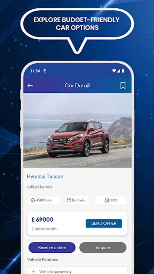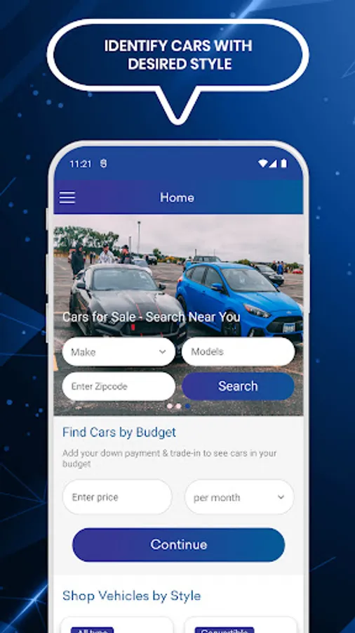 The home page of the app shows multiple vehicles; you can either click on any or enter the down payment you are willing to pay and the app will show the cars accordingly.