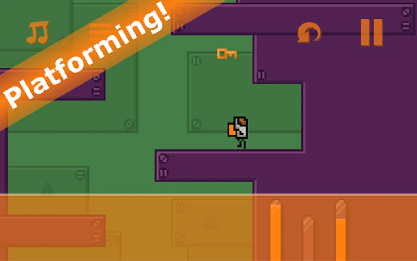 Jettison is a puzzle platformer that features a thirty level story mode and an impossibly difficult set of challenge levels designed to test your skills. You play as an astronaut escaping an exploding factory on the moon. The factory you're escaping has deadly traps including acid and lasers. The game is easy to learn and play, only requiring a single press to fire your jetpack. You have a small amount of fuel that will recharge when you are touching the ground. The challenge comes with maneuvering through hazardous traps while trying to conserve fuel. Each level has a key and collecting it will open the door to the next level. Beat all the levels to get to the escape pod and leave the moon!