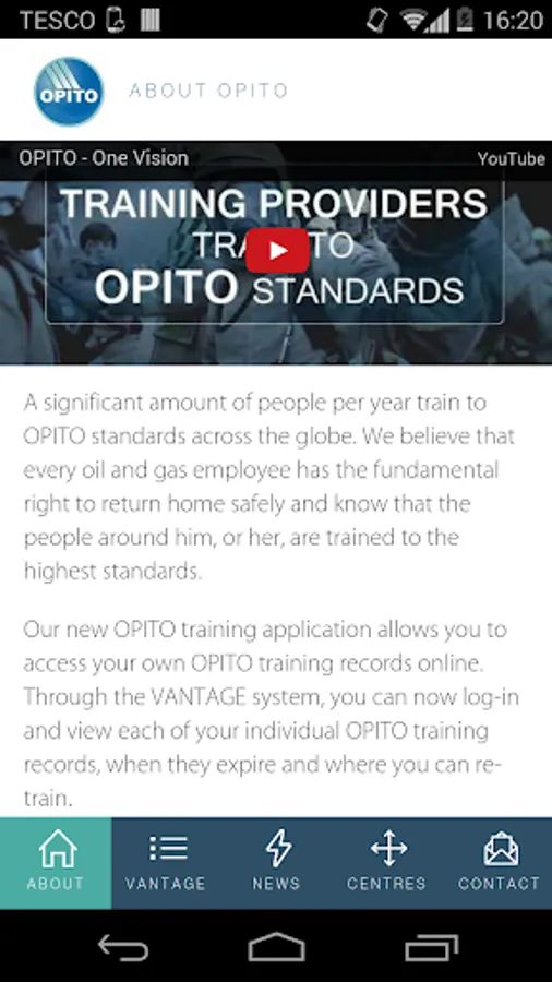 The OPITO Training App allows you to access your OPITO certification online, helping you to keep track of your offshore training records. You can access the Vantage system, look at your OPITO certificates and validity, search for training providers by location and keep up to date with OPITO news.