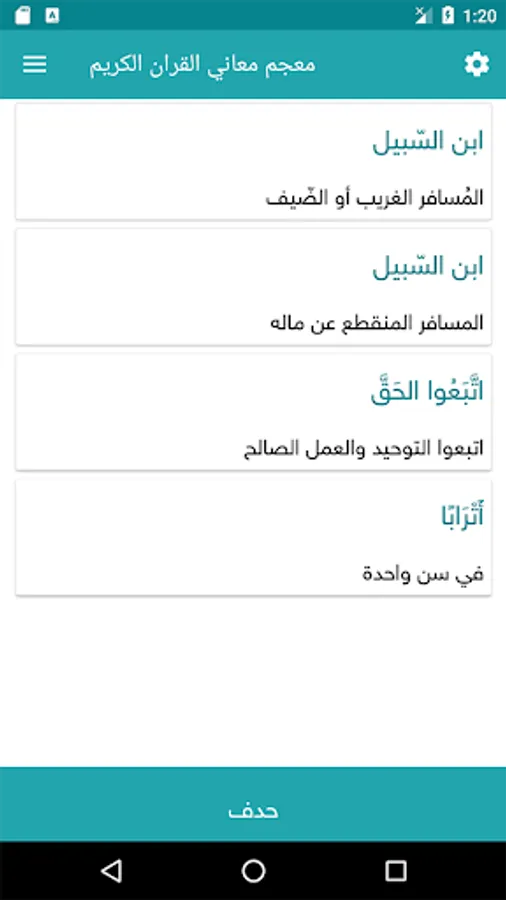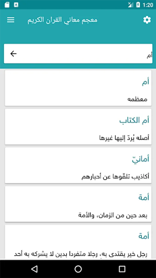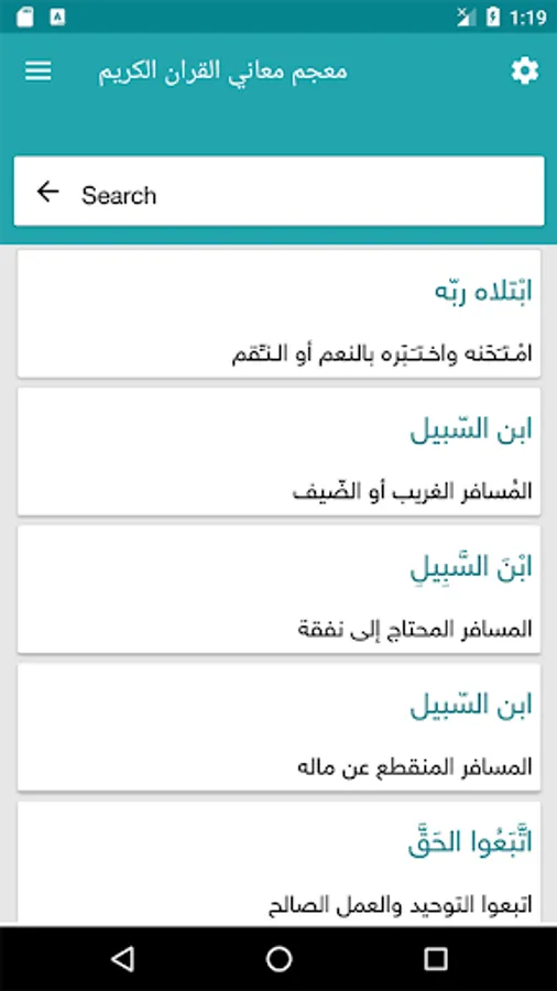 The application of a comprehensive dictionary and glossary of words in the Qur'an that explains the meanings of the words mentioned in the Holy Quran to facilitate understanding of words while giving fullness to the verses that contain the word to be searched for, as it works without the need to connect to the Internet.