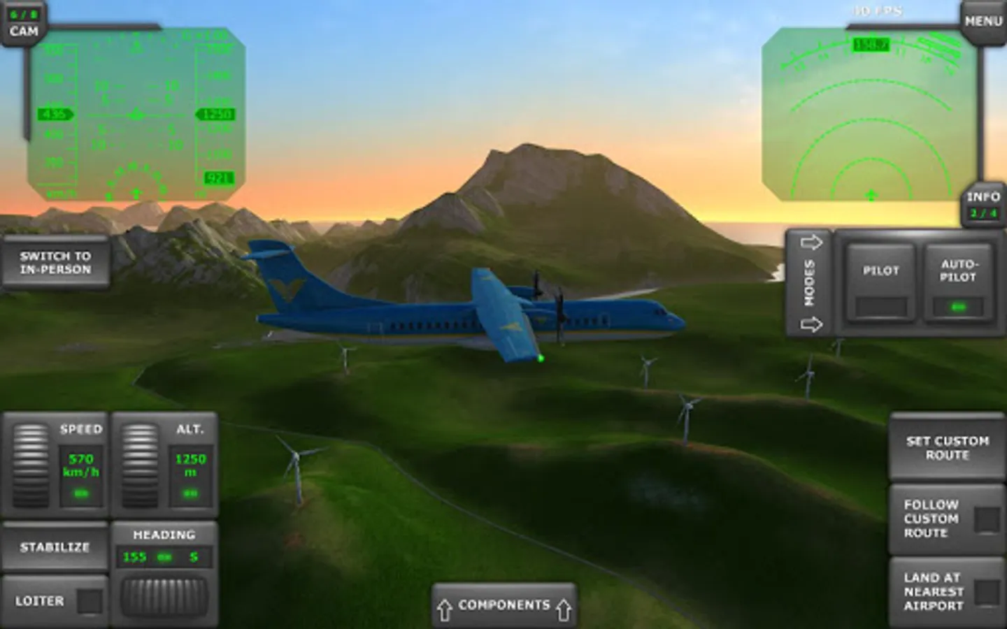 "Turboprop Flight Simulator" is a 3D airplane simulator game, in which you pilot various types of modern turboprop aircraft, and also drive ground vehicles.