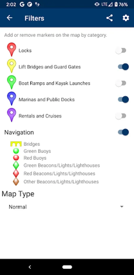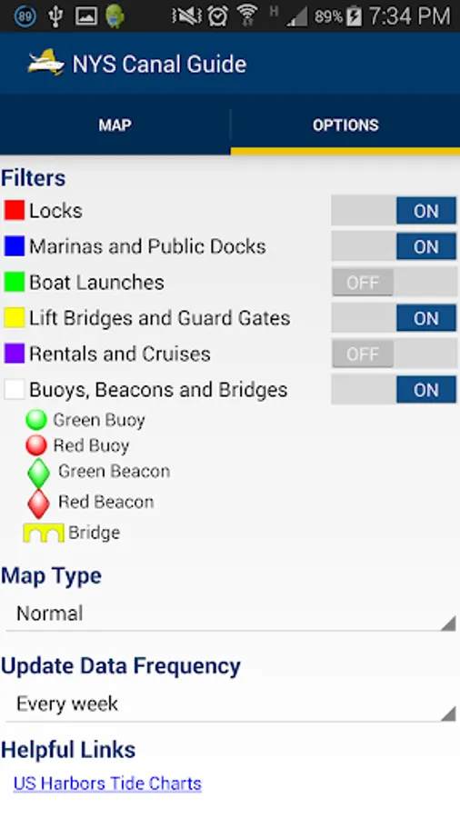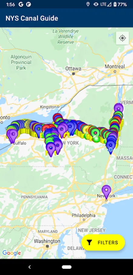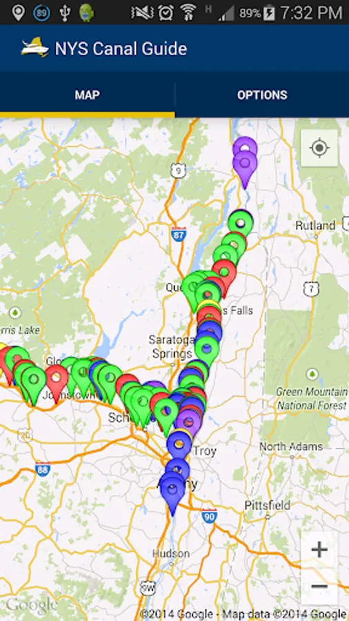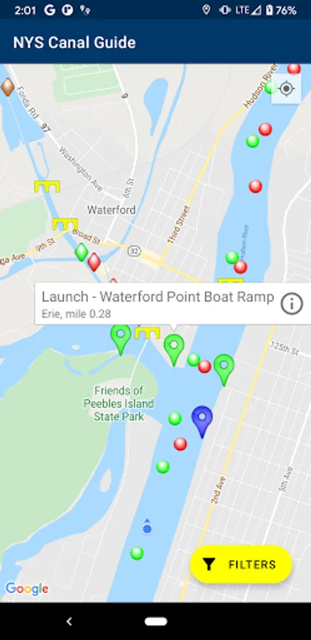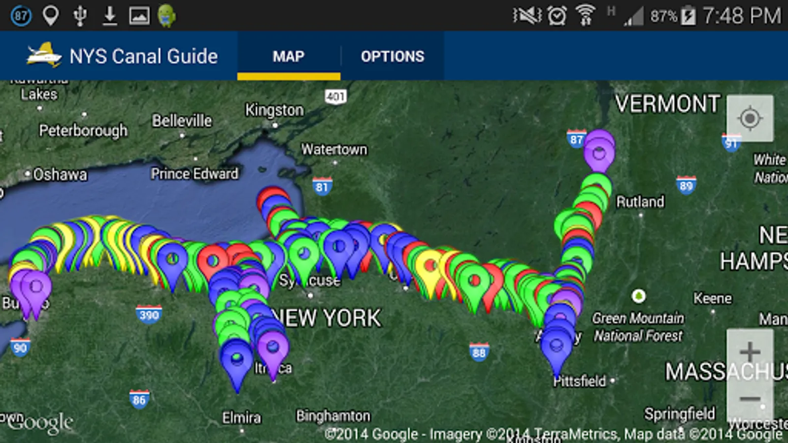 This app will help you find points of interest along rivers throughout the New York state canal systems. Points of interest include locks, marinas and public docks, boat launches, bridges, guarded gates, cruises and rentals. You can then find out information such as a phone number, web site, and other information about the site. Now the map includes navigation information such as buoys, beacons and lighthouses.